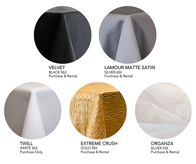Velvet Black works well as a basecloth, especially for head tables or feature areas. Its matte finish grounds the prints.