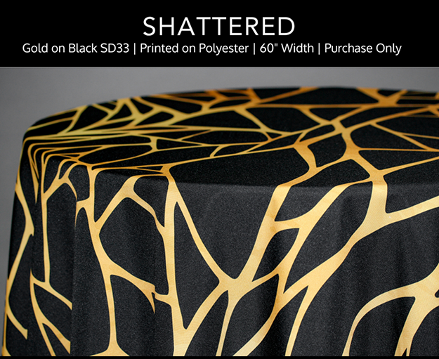 Extreme Crush Gold is best used sparingly. Napkin cuffs, ribbons, or chair accents are enough to echo the gold in Shattered.