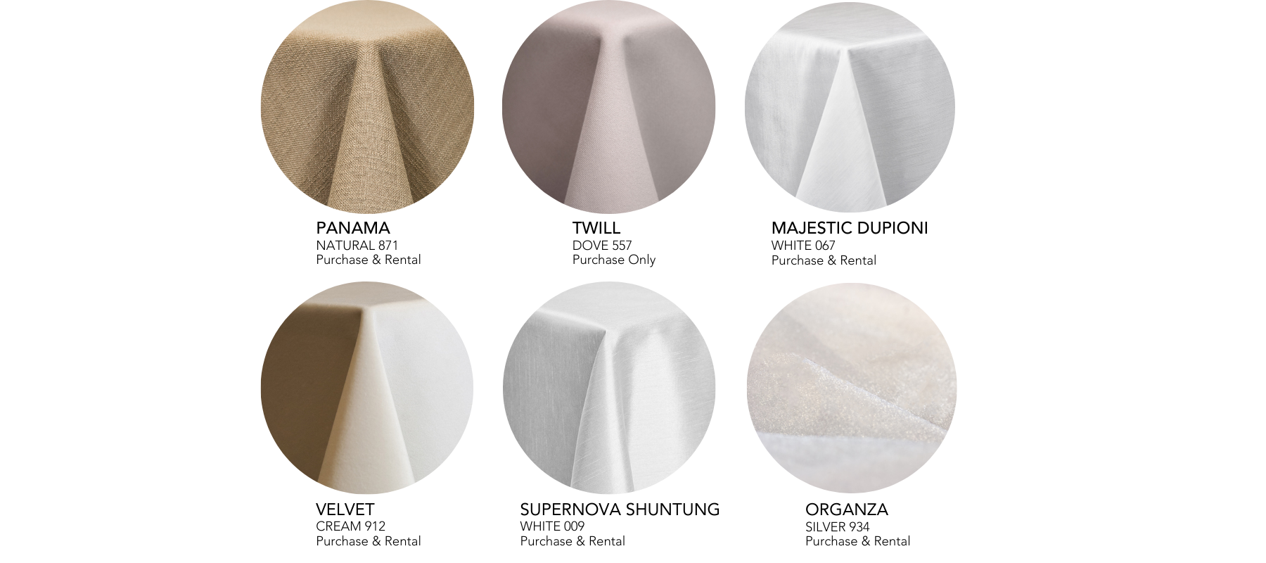 All three linens carry a degree of shine and texture, but each has a different grain size. When layered in a room or mixed across tables, they create visual depth and a cohesive look. The space is clean, crisp, and neutral while still giving guests something interesting to look at.